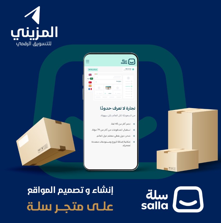 إنشاء متجر الكتروني على منصة سلة ( غير شامل قيمة الاشتراك ) · إضافة بياناتك الخاصه مثل اسمك وارقام التواصل وموقع التخزين · إضافة معلومات تعريفيه عن متجرك · إضافة الاقسام الخاصة بالمتجر · إضافة الى 15 منتج مع تصميم صورة المنتج · إضافة اسم المنتج والمواصفات والسعر والكمية · تصميم 3 بنرات : تعريف- وسائل الدفع-اختياري · متجرك ربط حسابات التواصل الاجتماعي · إضافة اللوقو ( شعار المتجر ) الخاص بمتجرك، في حال تصميم شعارك · تعديل الوان تخزينها متناسقة مع الشعار الخاص بك · متجرك بحساباتك البنكية وتفعيل طرق الدفع الالكتروني مثل مدى - فيزا - اببل باي -STC Pay - تحويلي · قوائم عمل وترتيب الصفحة الرئيسية له للمتجر مثل عرض بنرات عروض خاصةه ثم المنتجات اكثر طلبا وغيره على بنك حسب حسابك · متجرك مع شركات الشحن ( ارامكس - سمسا .. والعديد من الشركات المتاحة ) · ربط الواتس آب كمحادثة فورية · الدومين أو إسم النطاق الخاص بموقعك الإلكتروني (www.almoziny.com) ( غير شامل قيمة الاشتراك )